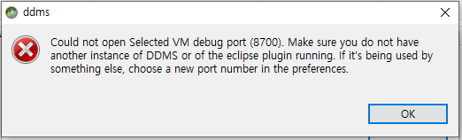 이때 "Error Loading DDMS Preferences” 이런 에러가 ...
