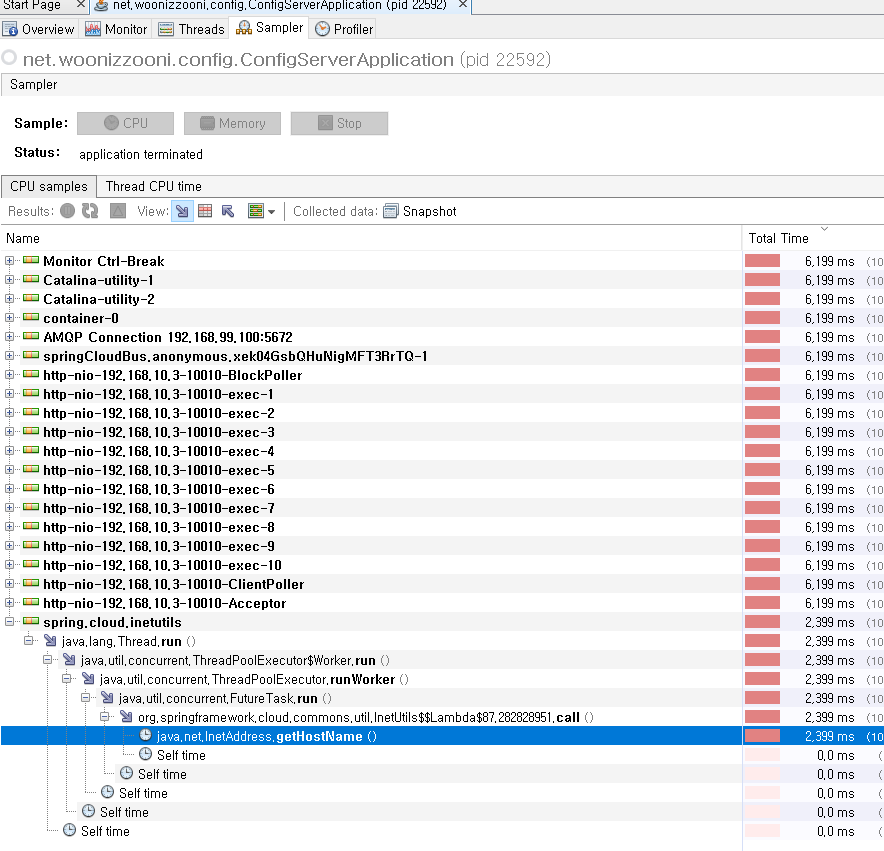 아래 함수에서 '초'단위의 시간이 소요되기 때문이라고 판단. (getHostName())